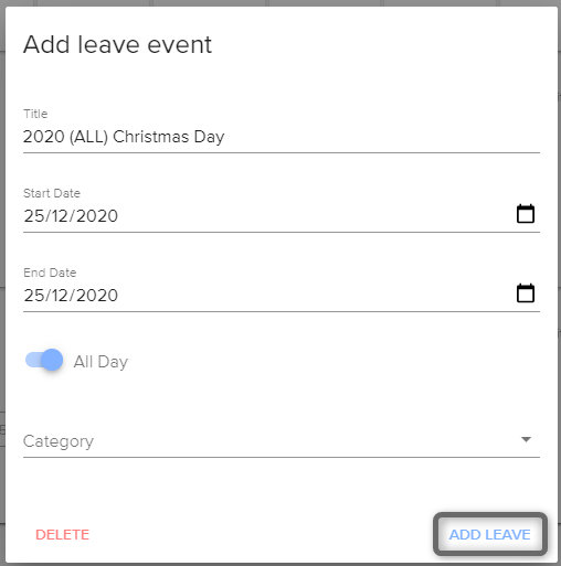 Within the leave pop-up form, edit the fields you want and then click “Add Leave”.