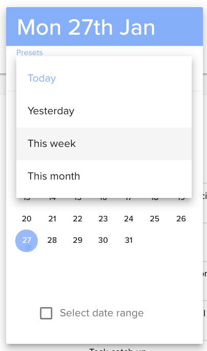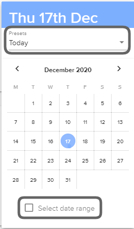 You can filter the date by either clicking on the “Preset” option or manually selecting the date range by checking the “Select date range” box and choosing the dates.