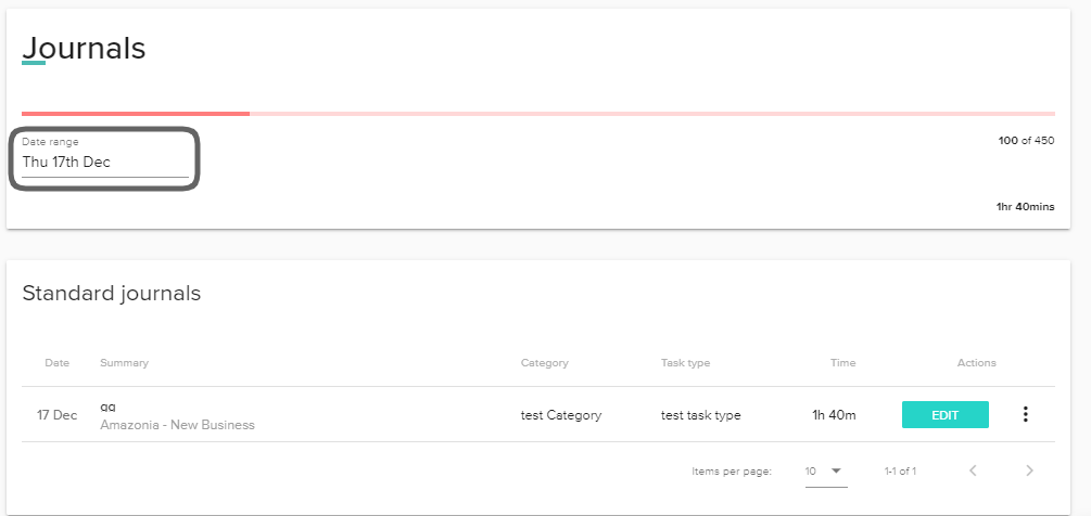 Once the dates have been selected, the journals completed in your chosen date range will display.