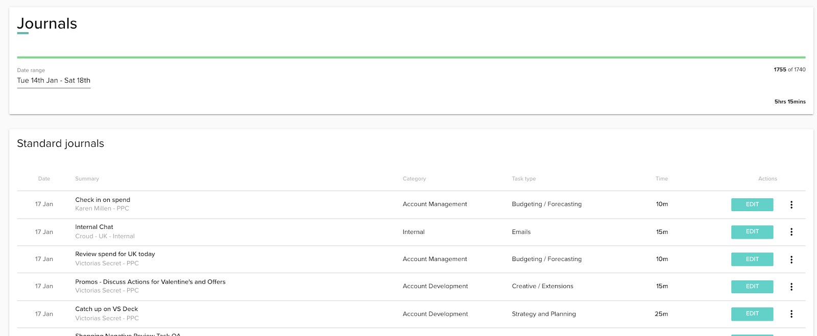To view journals from a date range then you can do this by visiting the “Journals” page via the main menu and click on “Journals”.