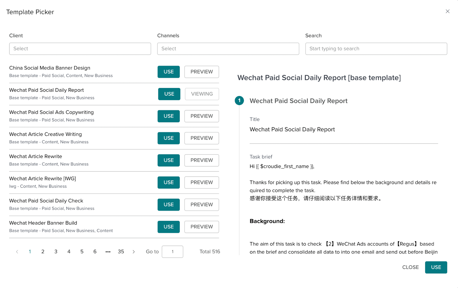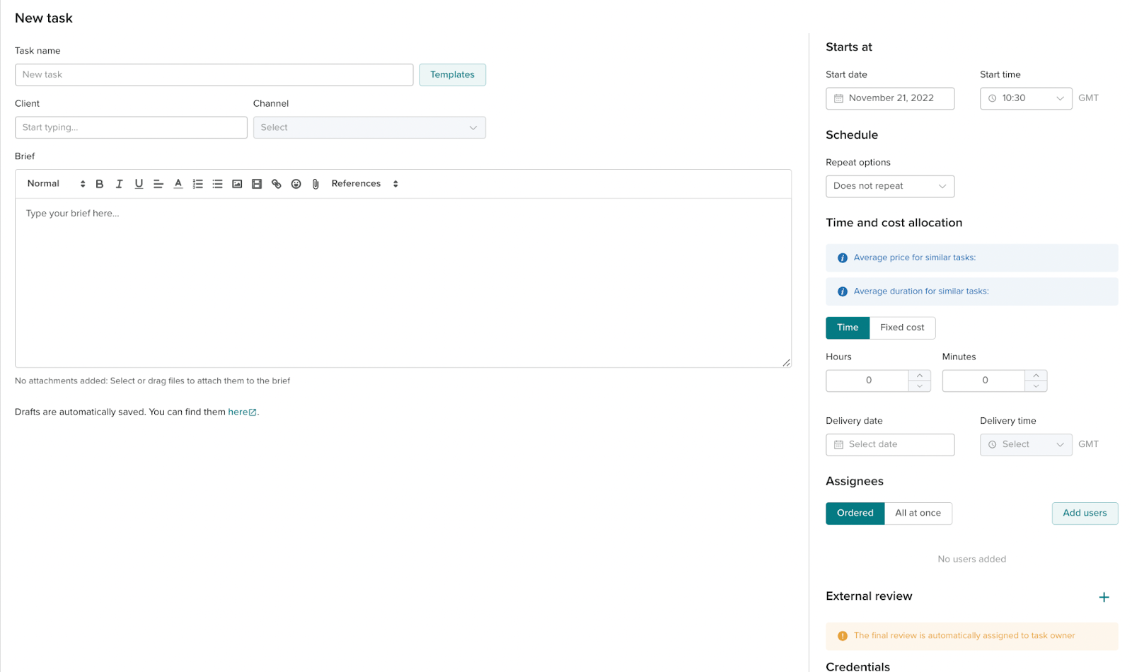 If you do not want to write a brief there are task templates that users can add to relevant tasks. If there is not an existing template for the new task that you are building, do consider sending a copy of the task brief to the Network team who can create the template in Croud Control for future use!