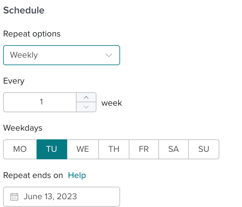 By giving a task a schedule, you are creating a recurring task. This means that the task repeats itself based on the options selected until the end date. `