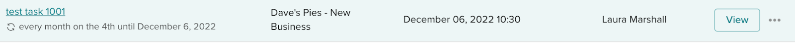 Within the ‘Recurring Task’ screen, you will be displayed a list of all of the recurring tasks that you own by default. You can search for the client name or task name in the search bar to find the recurring task you want to view, take ownership or delete.