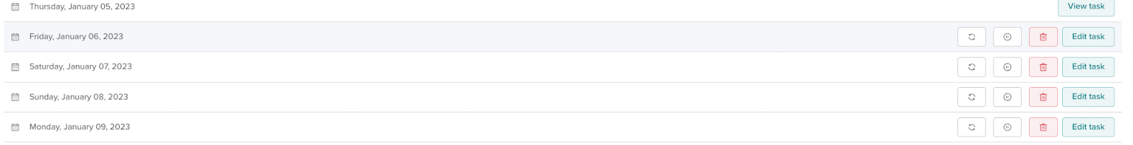 Navigate to the recurring tasks page on the nav bar, from here you can view all your recurring tasks. To edit the full schedule of a task, click on the view button next to a recurring task.