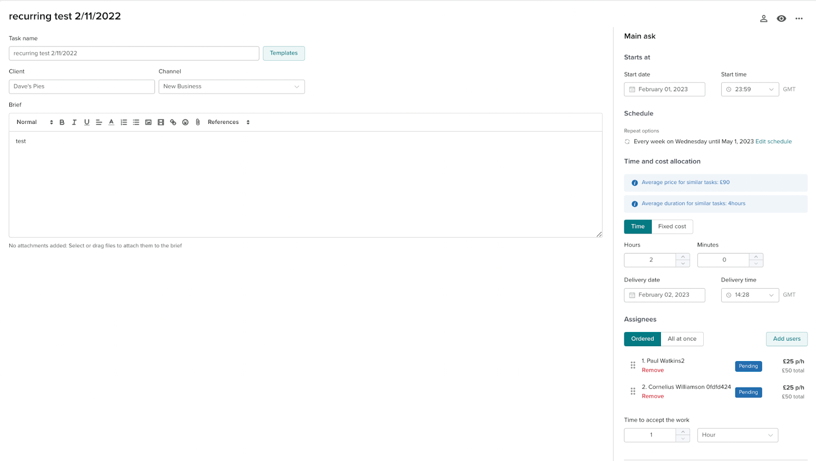 From here you can edit the brief, minutes and deadlines of the future instance.