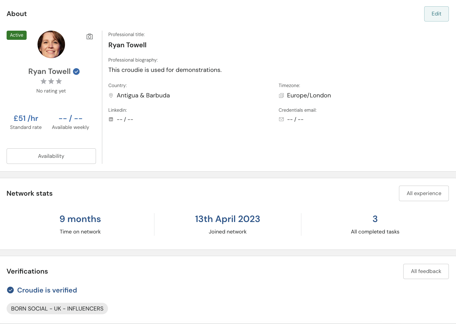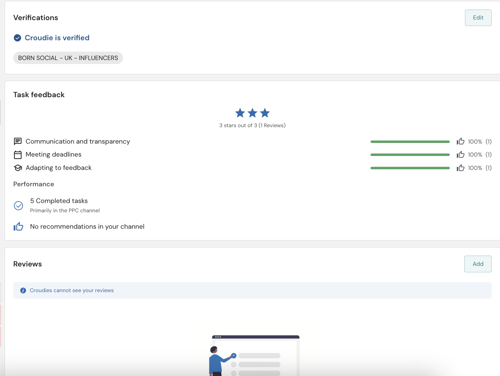 Verifications are found on either the summary page of the croudie profile.