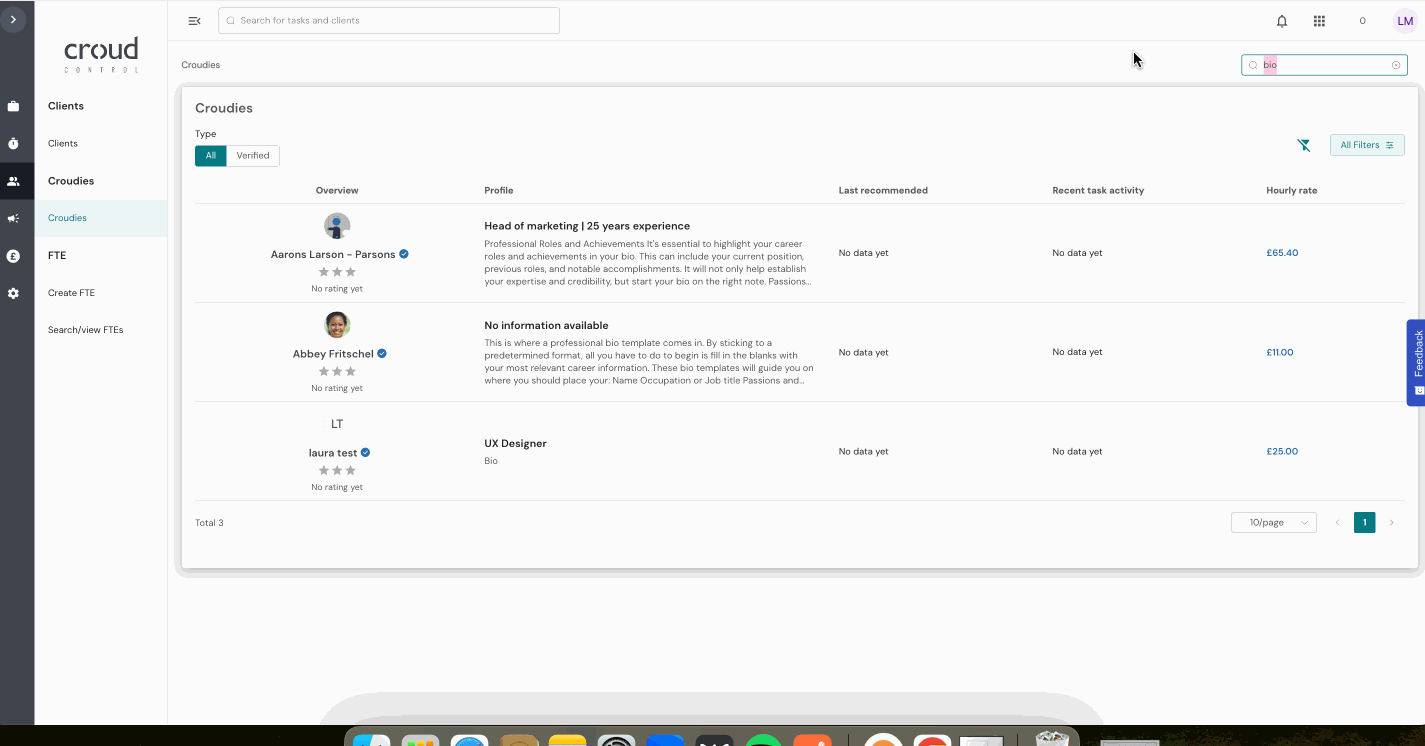 If a keyword is present in Croudie’s bio or title, the Croudie will show in your results (in both the Croudie profile and Croudie picker). Search for your channel or the skill you need to complete a task and the relevant croudies will show.