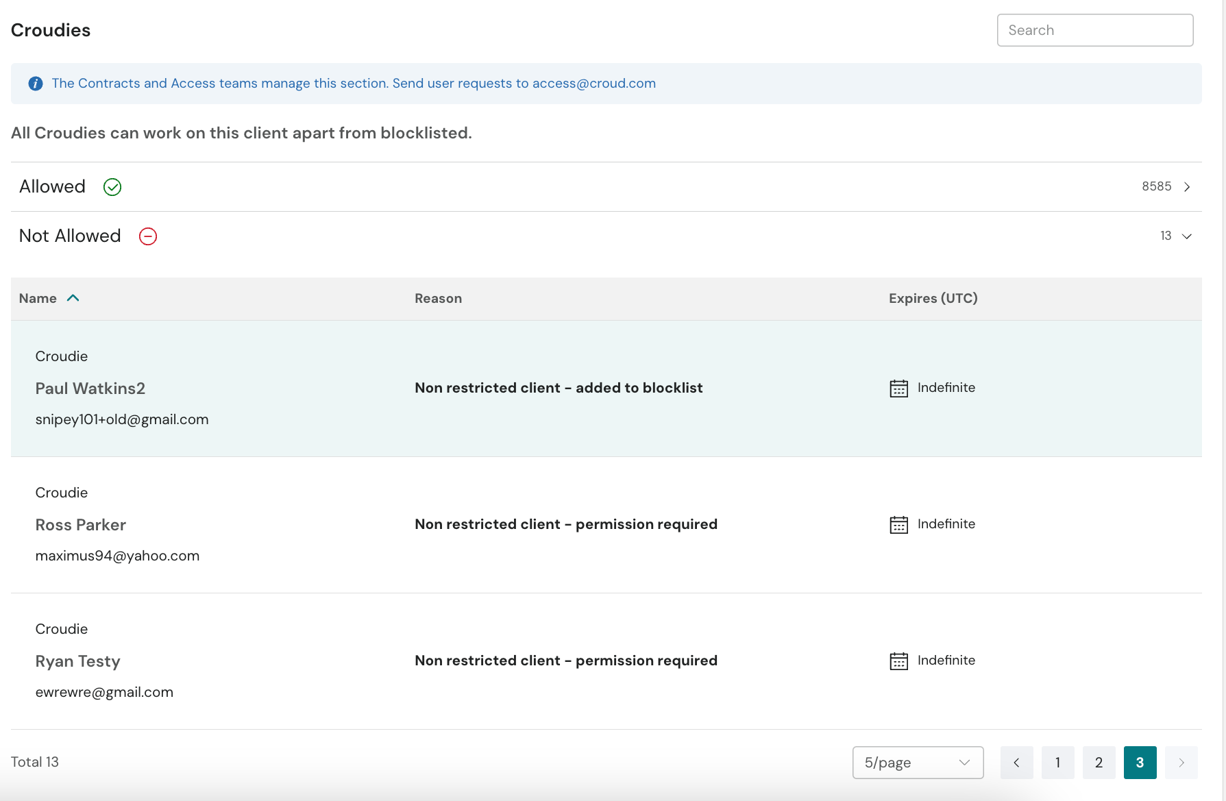 We’ve streamlined managing who can and cannot work on a client by introducing two clear lists: ‘Allowed’ and ‘Not Allowed’. You can easily search through either list to view users who can work on the client.